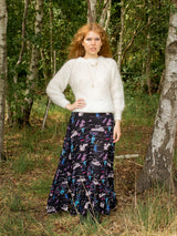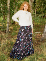 Endley is a fun bohemian style maxi skirt. This full length style falls to a voluminous double tiered hem with slight gathering to give it a feminine feel. Fastens with a zip and metal clasp at the side of the waist.