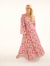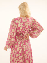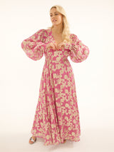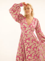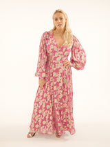 Gale is a show stopping 70s inspired maxi dress with the wow factor! The slim fit bodice has a V neckline and thick waistband which cinches you in at the waist. Fastens with a zip at the side. With balloon sleeves ending in a slim cuff with covered buttons. The voluminous A line maxi skirt gives a sense of movement and elegance to the dress.
