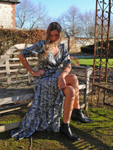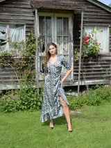 The Sweetheart Flamenco is a classic wrap style maxi dress- elegant, fluid and designed to flatter the curves. Fitted V neck bust with a tie around the waist, bow details on the half sleeves and a feminine frilled hemline for the romantic girl at heart.