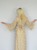 The dreamy cream colour pairs beautifully with a gold spot pattern to create a show stopping event dress. This sheer chiffon style has satin lining. Pair with strappy heels or sandals for the perfect summer party outfit choice!