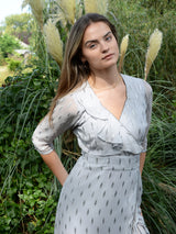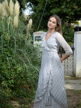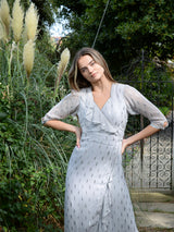 Our classic style ‘Flamenco’ is a maxi wrap dress. It is elegant, fluid and designed to flatter the curves. Fitted V neck frilled bust with a tie around the waist and a feminine frilled hemline for the romantic girl at heart.