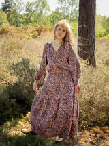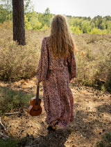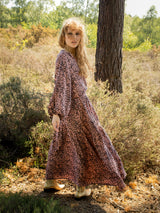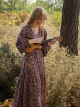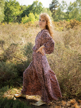Channel a 70s inspired bohemian fantasy in Stardust’s ‘Leo' maxi style. This oversized dress cuts a loose silhouette that floats over your figure and falls to a voluminous tiered hem. Features a flexible elasticated waistband and low V neckline to balance out the modest shape. With balloon sleeves and a single button fastening at the neck.