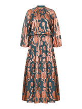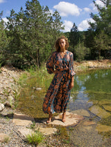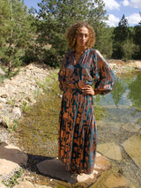 Channel a 70s inspired bohemian fantasy in Stardust’s ‘Leo' maxi style. This oversized dress cuts a loose silhouette that floats over your figure and falls to a voluminous tiered hem. Features a flexible elasticated waistband and low V neckline to balance out the modest shape. With balloon sleeves and a single button fastening at the neck.