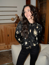 Victoria Blouse Black & Cream Hearts