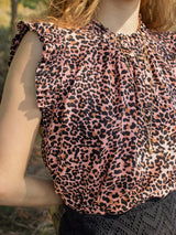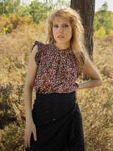 This thick brushed cotton feel fabric is printed with a fun leopard print design. Style casually with jeans and trousers for easy everyday wear. Go for a more trendy look by pairing with our Mia wrap skirt in matching Blush Leopard or Black Shiffle (as seen on the model).