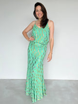 Flora Skirt Jade Metallic Sunset