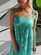 Louise Dress Mint Flower Cotton