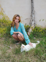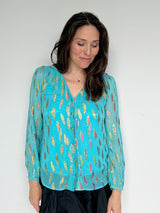 Betty Blouse Turquoise Metallic Sunset Sale