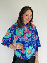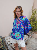 The 'Georgia' top is an effortless bohemian style piece, perfect to add to your summer wardrobe. The V neck fastens with a beaded tassel tie, and the balloon sleeves are finished with a comfortable shirred cuff. With a loose, relaxed silhouette perfect to tuck in to shorts or skirts.