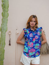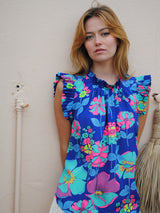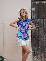 Victoria Sun Blouse Electric Blue Flower